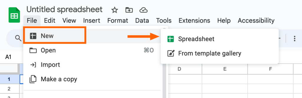 3. Aparecerá una nueva pestaña con una hoja de cálculo de Google en blanco en la ventana de su navegador.